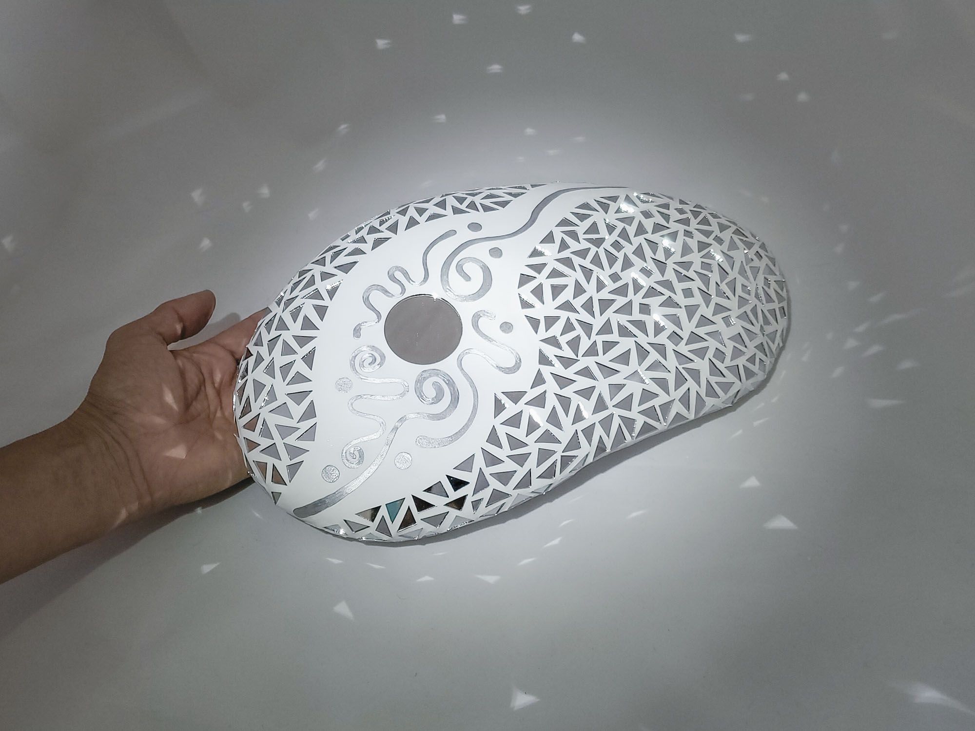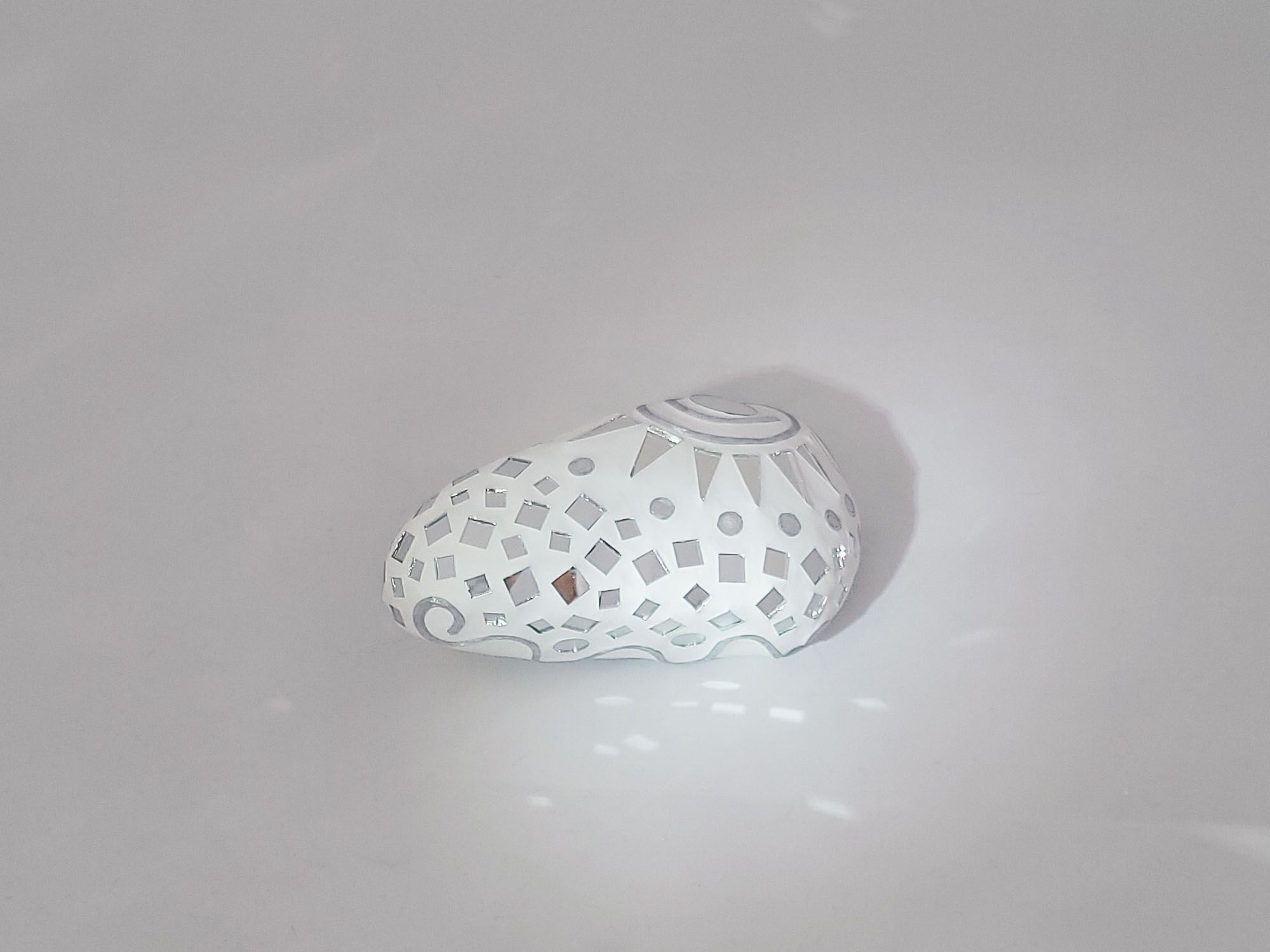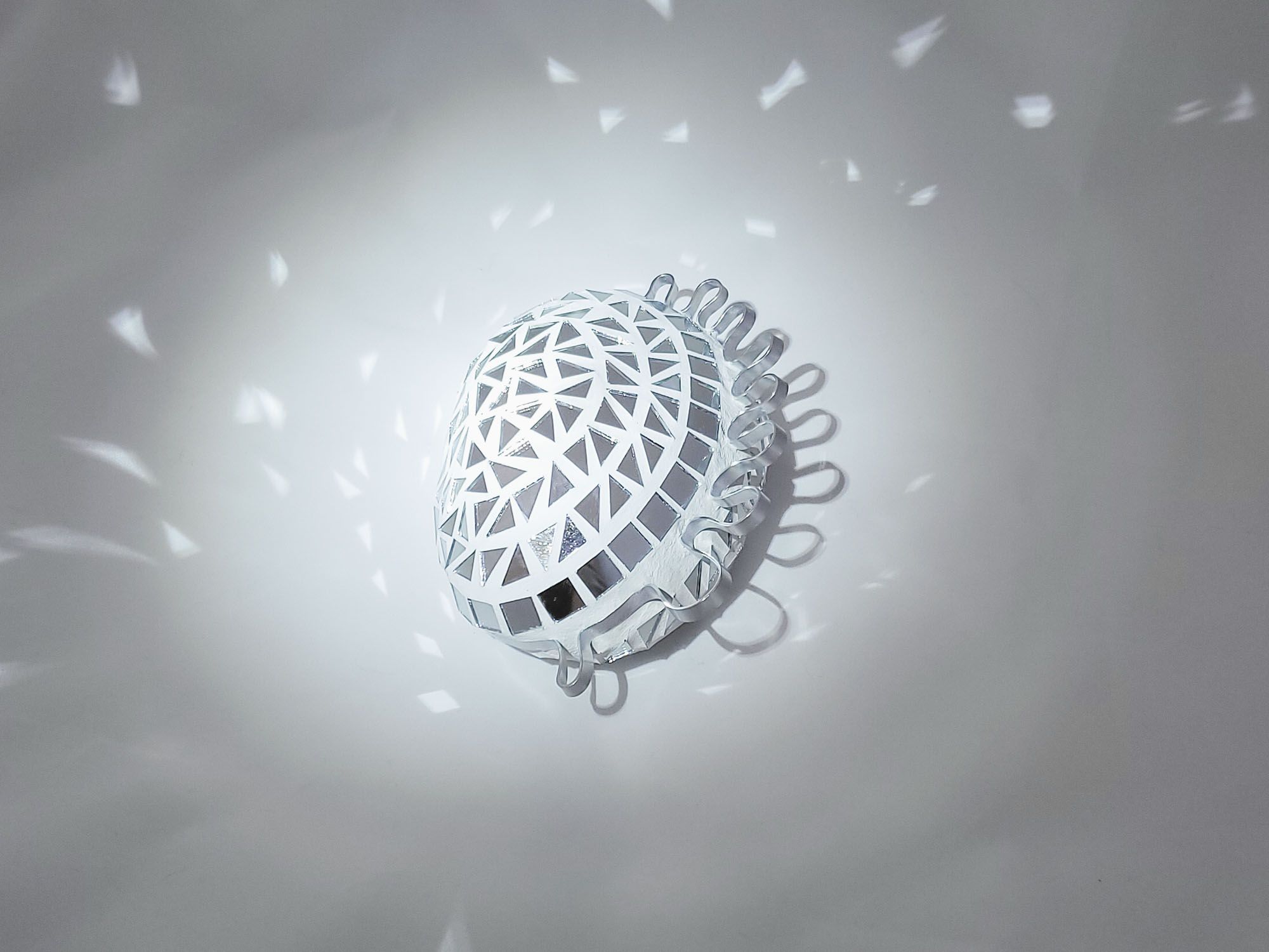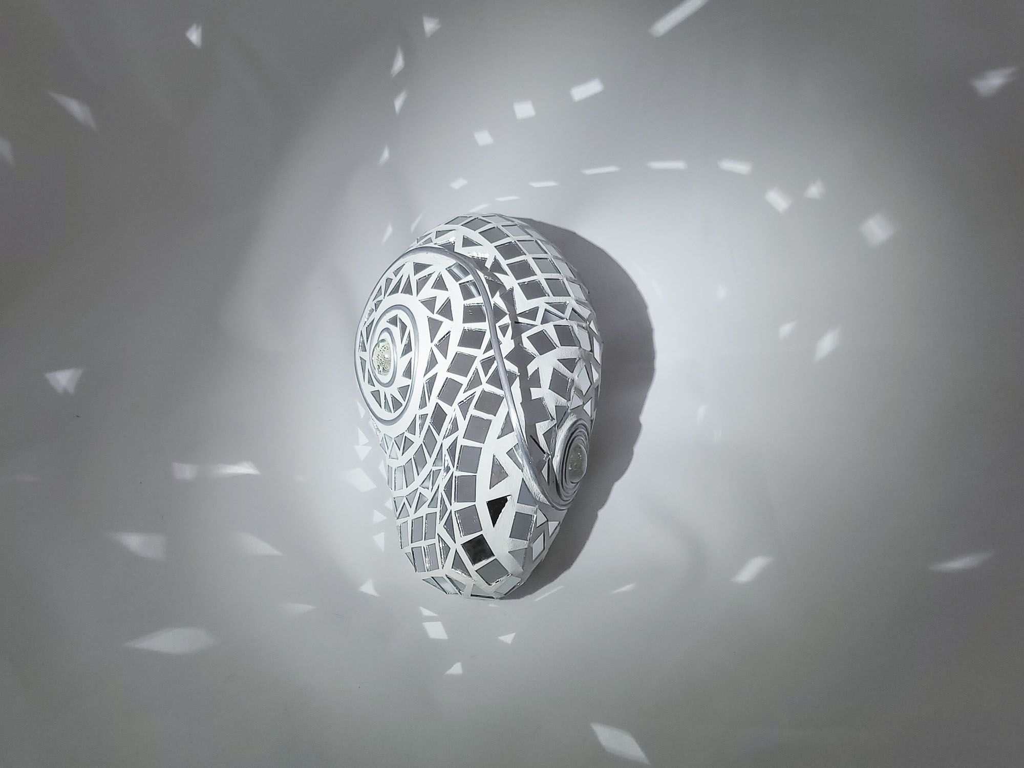 Die lichte Leichtigkeit der Steine: Für ihre Spiegelsteine verbindet ursamoh gegensätzliche Materialien und verarbeitet sie zu einem dreidimensionalen, glitzernden Ganzen. Basis für ihre harmonischen Werke sind bis zu 20 Kilo schwere Steine. Diese findet sie am Ufer oder im Wasser von Flüssen und Bächen. Die Steine überzieht sie in akribischer Kleinarbeit mit plattgeklopftem, geschwungenem Aluminiumdraht, Fugenzement und Glasnuggets. Damit verbunden ist ein ebenso intensiver wie spielerischer Dialog mit der Form und Dynamik jedes einzelnen Steins. Aus dieser Auseinandersetzung erschafft ursamoh lichterfüllte Unikate voller Energie.