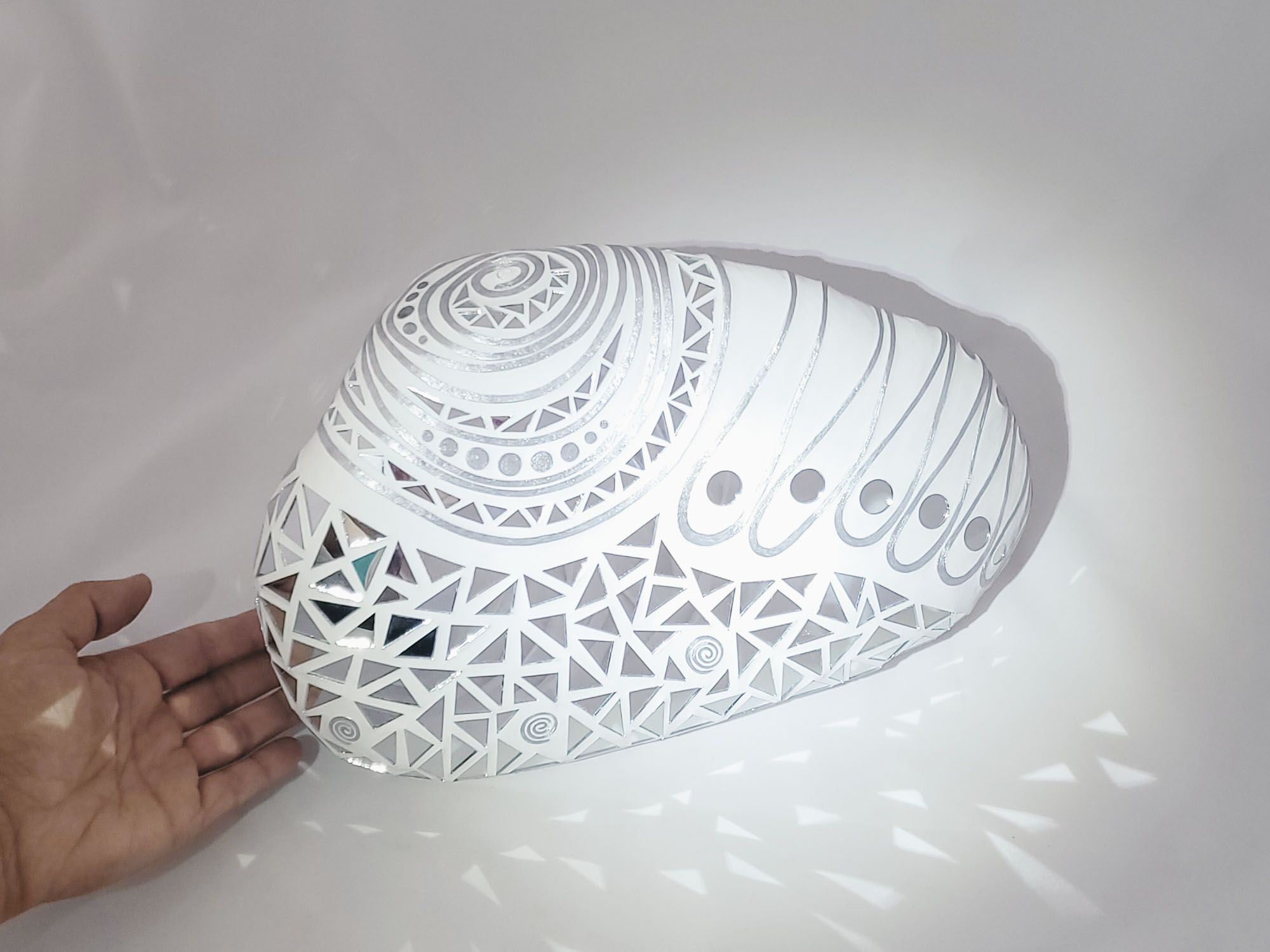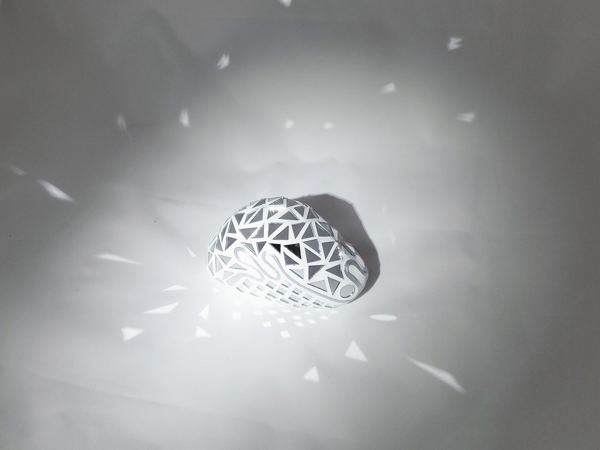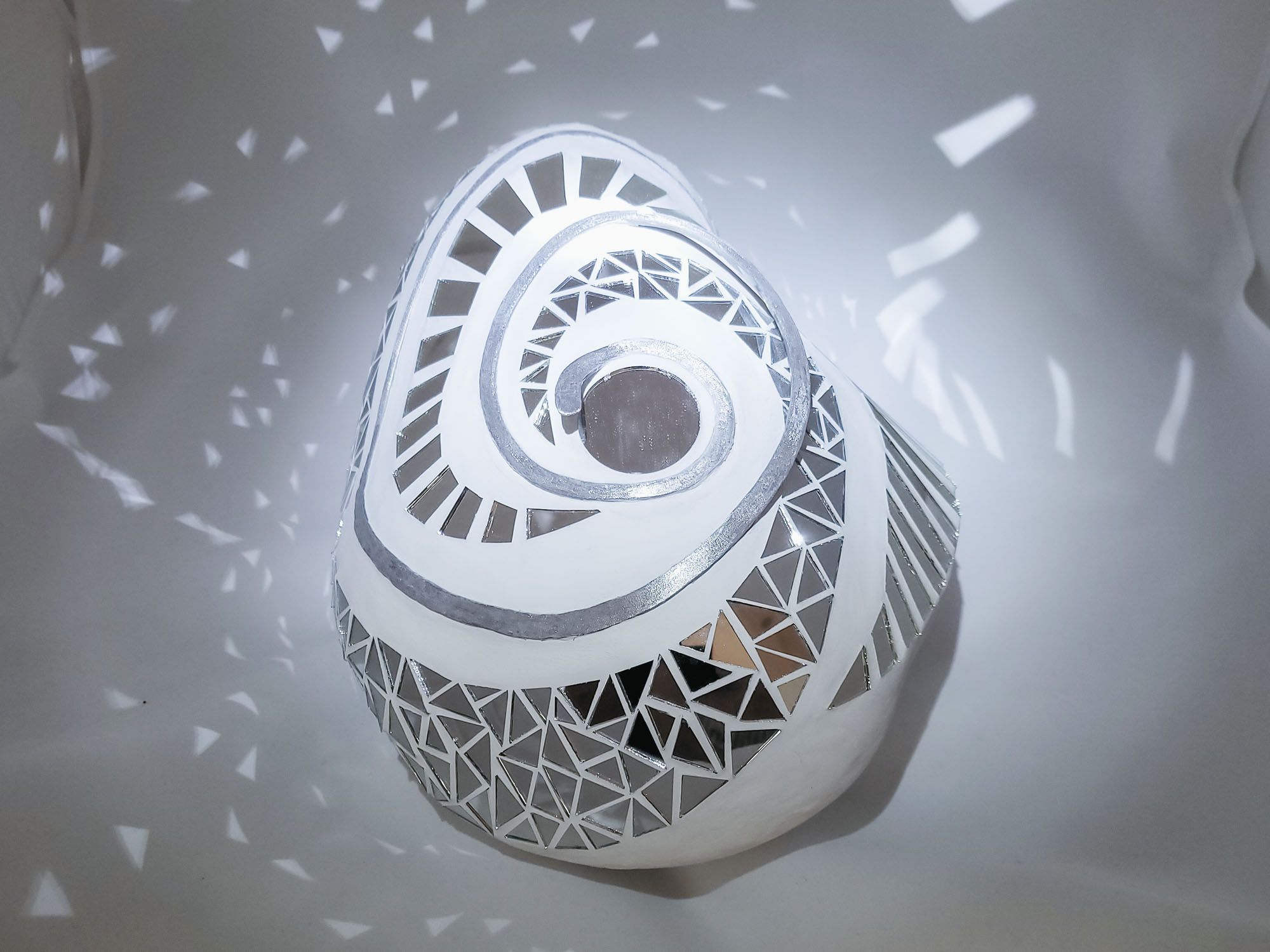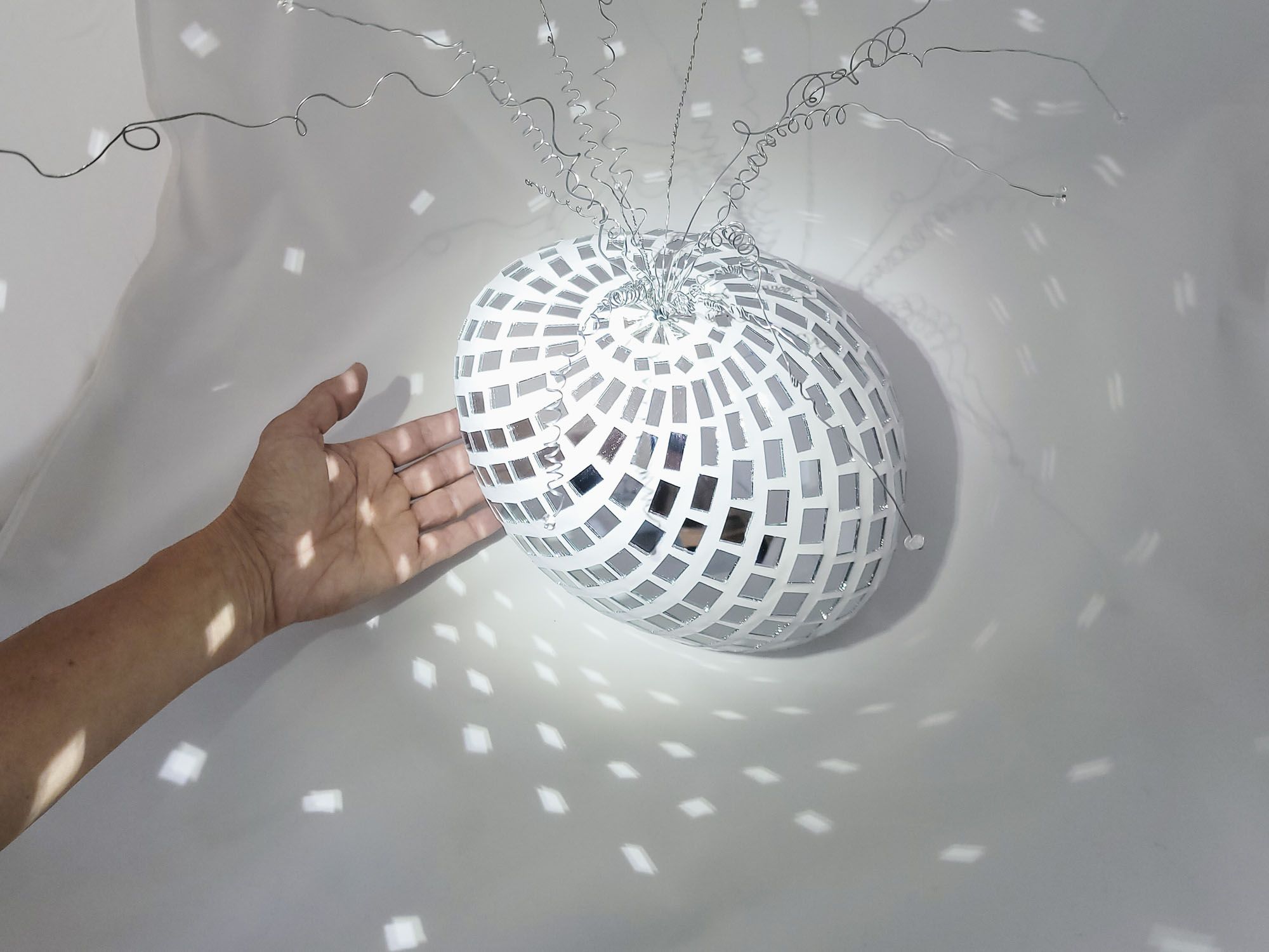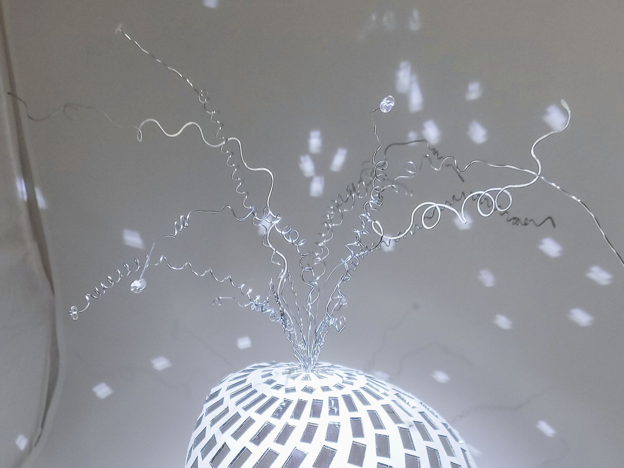 Die lichte Leichtigkeit der Steine: Für ihre Spiegelsteine verbindet ursamoh gegensätzliche Materialien und verarbeitet sie zu einem dreidimensionalen, glitzernden Ganzen. Basis für ihre harmonischen Werke sind bis zu 20 Kilo schwere Steine. Diese findet sie am Ufer oder im Wasser von Flüssen und Bächen. Die Steine überzieht sie in akribischer Kleinarbeit mit plattgeklopftem, geschwungenem Aluminiumdraht, Fugenzement und Glasnuggets. Damit verbunden ist ein ebenso intensiver wie spielerischer Dialog mit der Form und Dynamik jedes einzelnen Steins. Aus dieser Auseinandersetzung erschafft ursamoh lichterfüllte Unikate voller Energie.