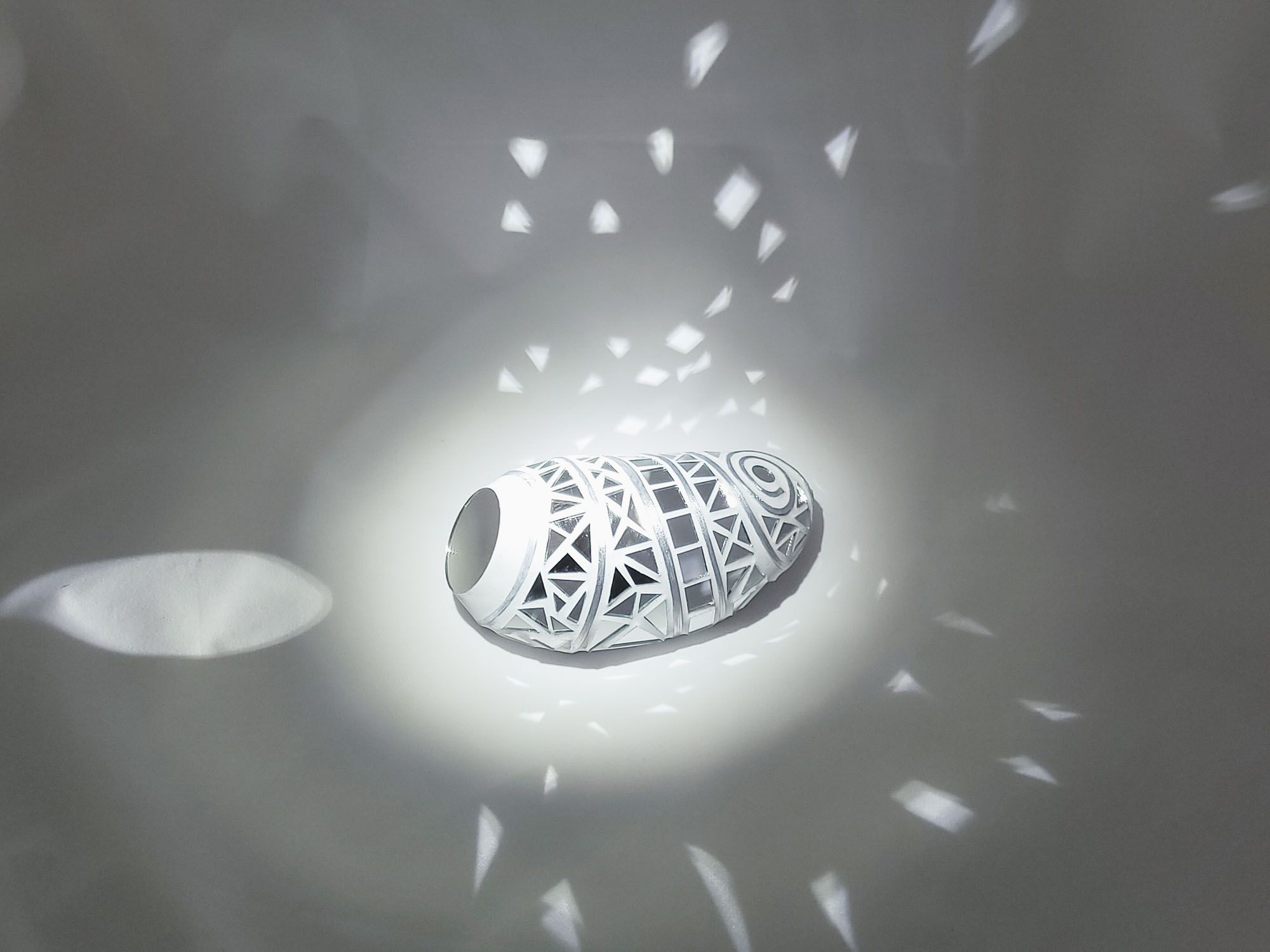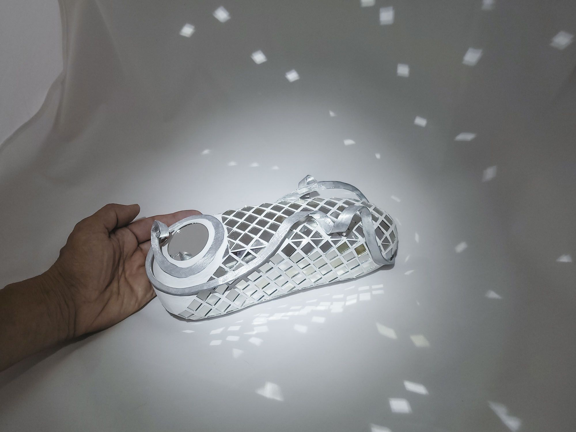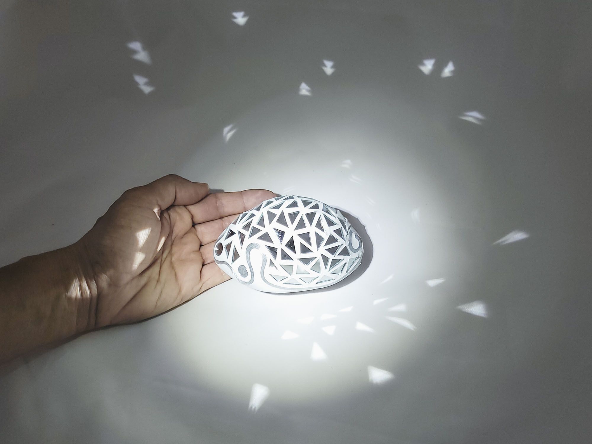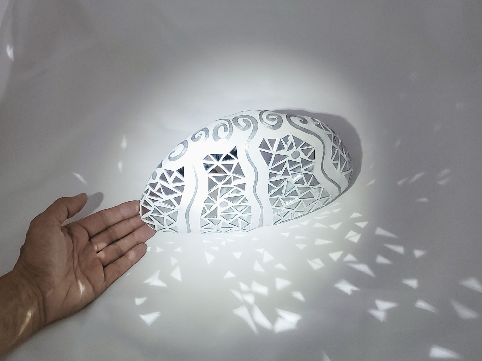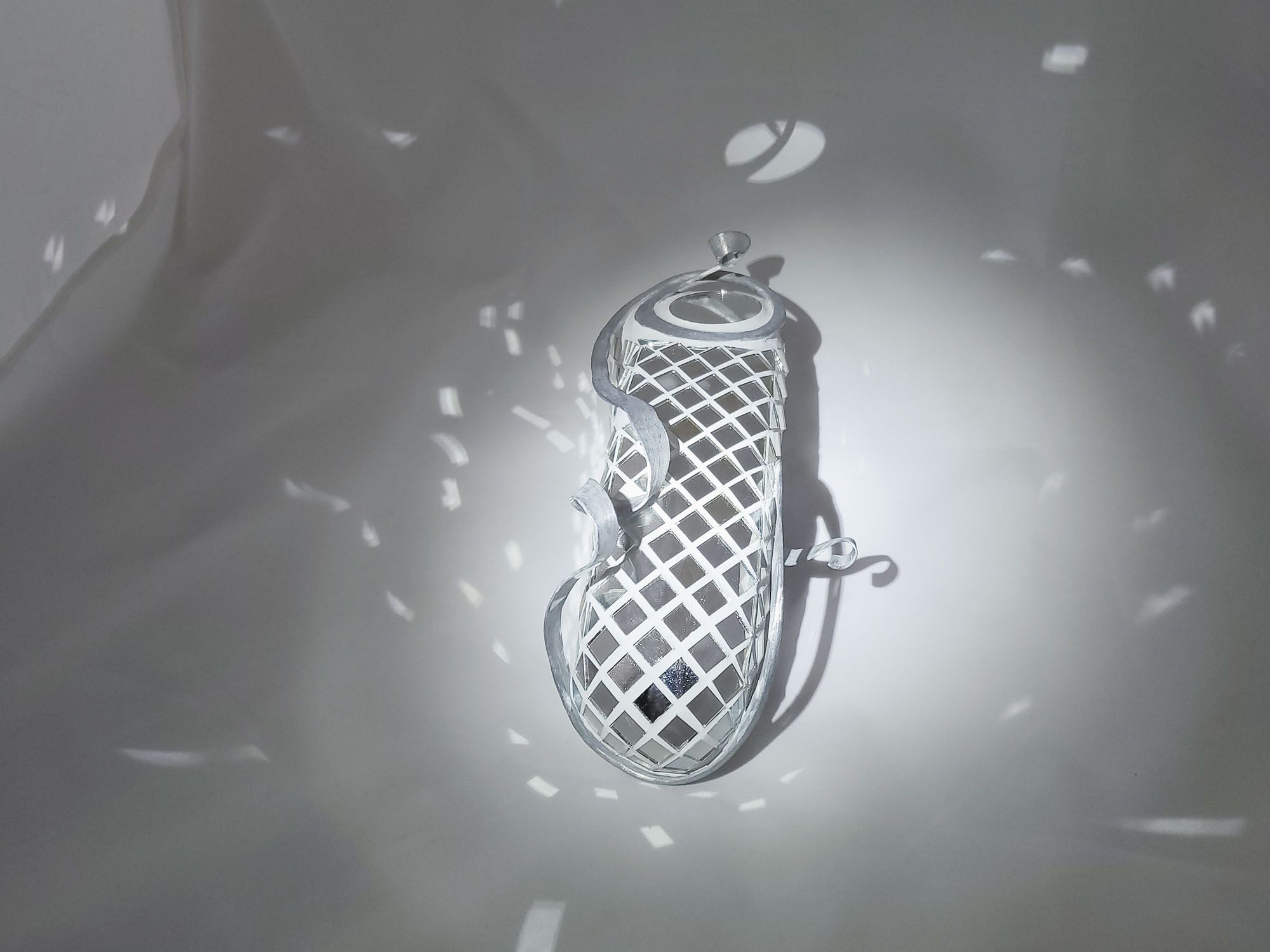Die lichte Leichtigkeit der Steine: Für ihre Spiegelsteine verbindet ursamoh gegensätzliche Materialien und verarbeitet sie zu einem dreidimensionalen, glitzernden Ganzen. Basis für ihre harmonischen Werke sind bis zu 20 Kilo schwere Steine. Diese findet sie am Ufer oder im Wasser von Flüssen und Bächen. Die Steine überzieht sie in akribischer Kleinarbeit mit plattgeklopftem, geschwungenem Aluminiumdraht, Fugenzement und Glasnuggets. Damit verbunden ist ein ebenso intensiver wie spielerischer Dialog mit der Form und Dynamik jedes einzelnen Steins. Aus dieser Auseinandersetzung erschafft ursamoh lichterfüllte Unikate voller Energie.