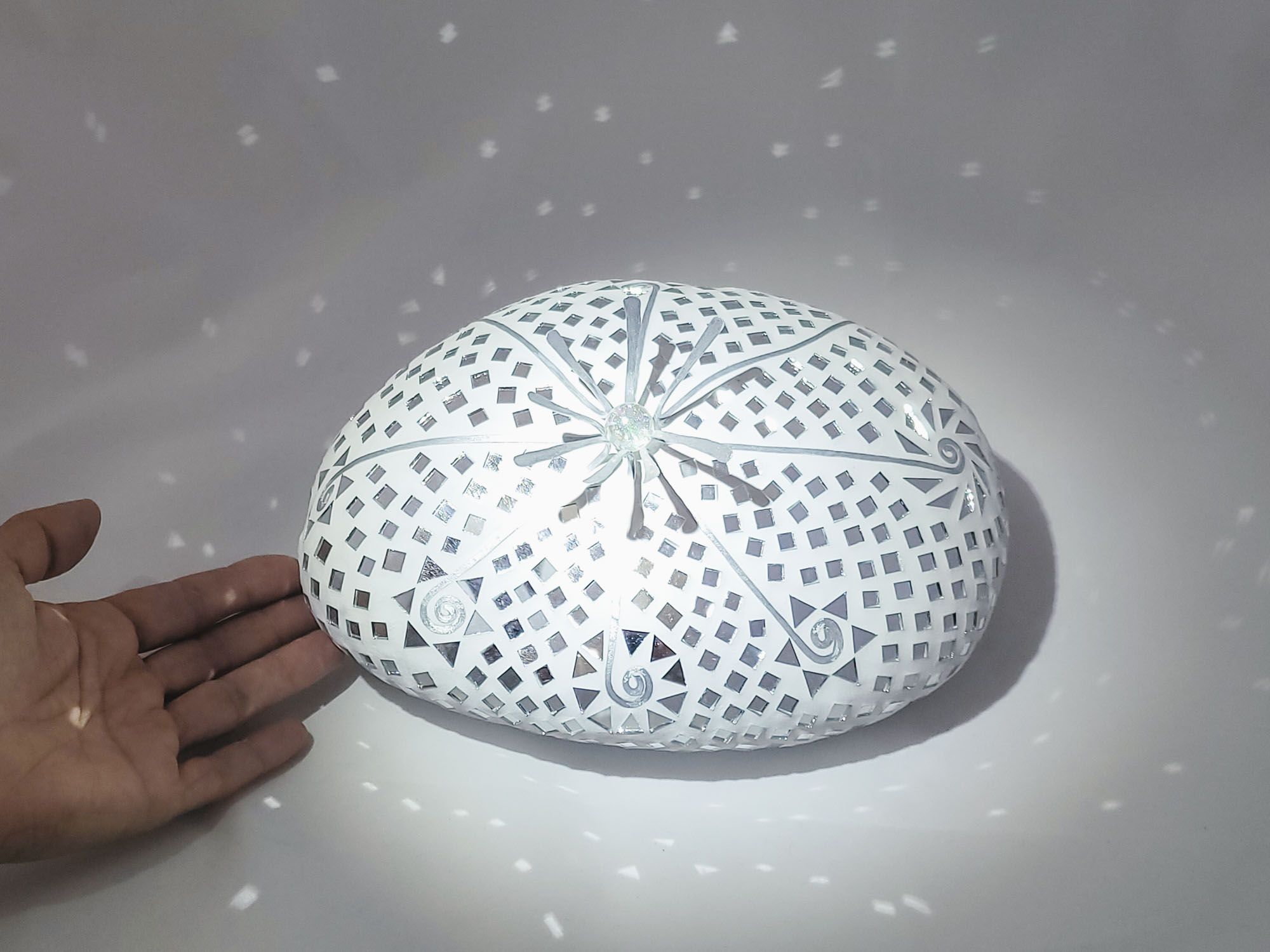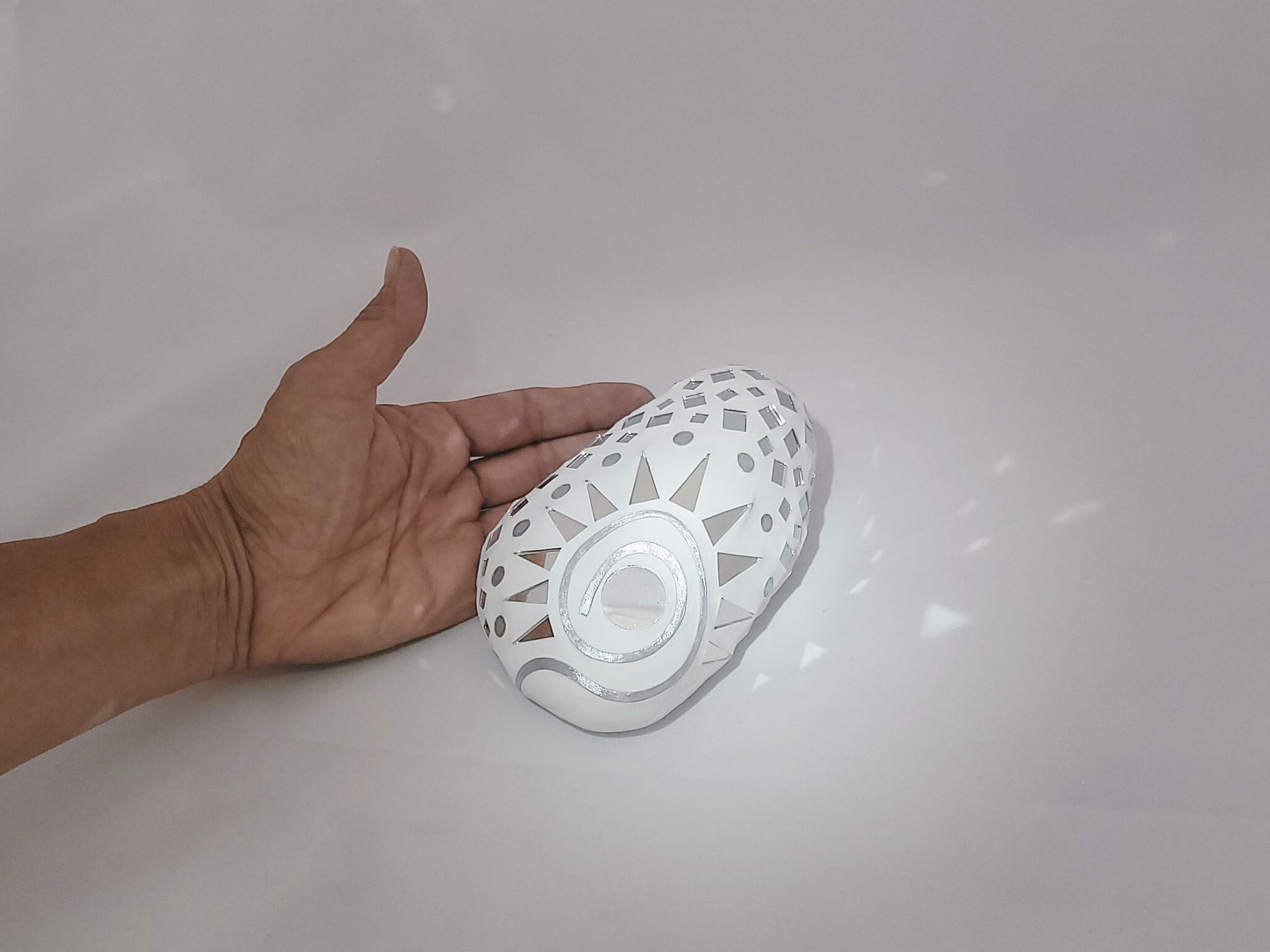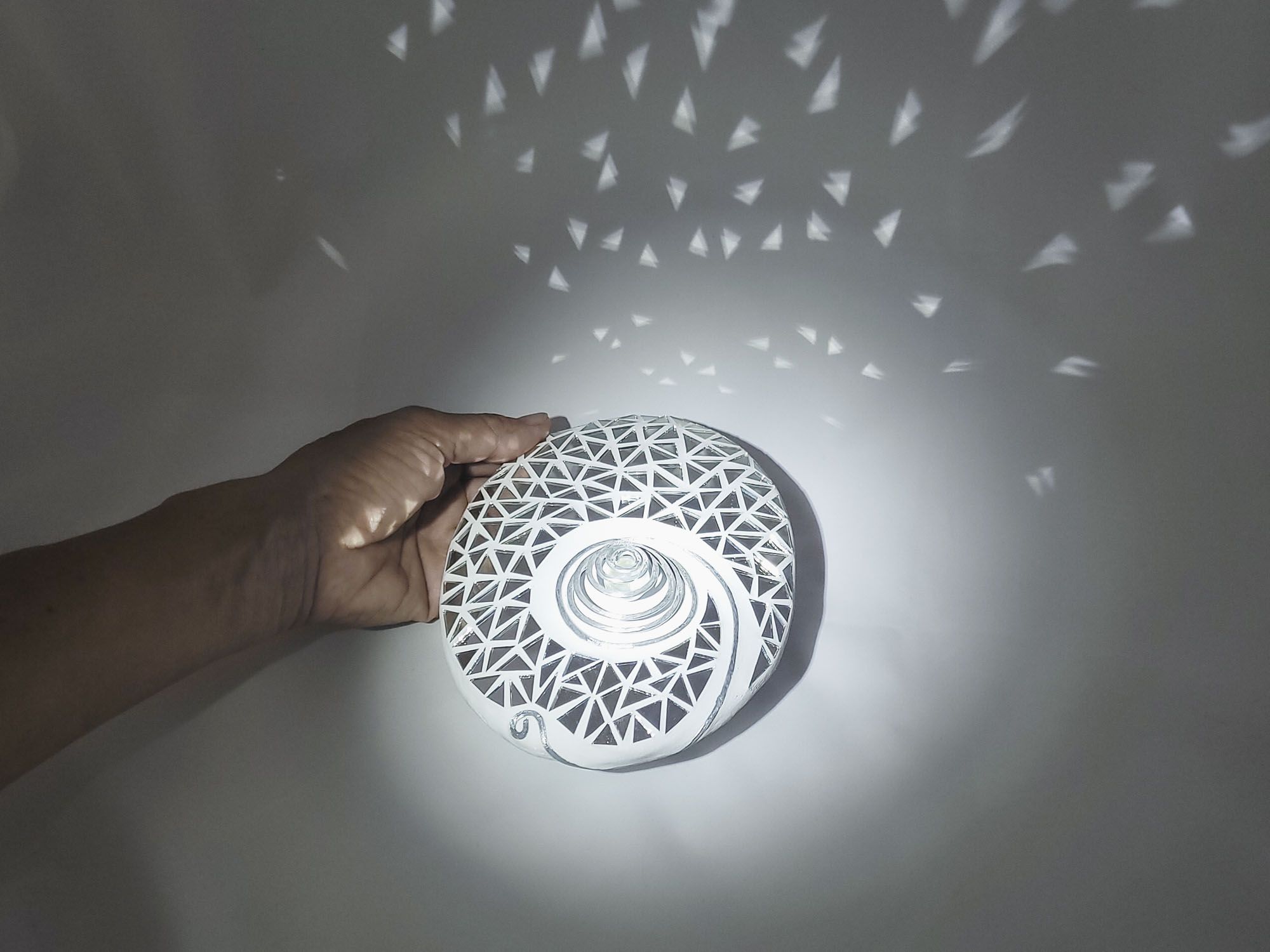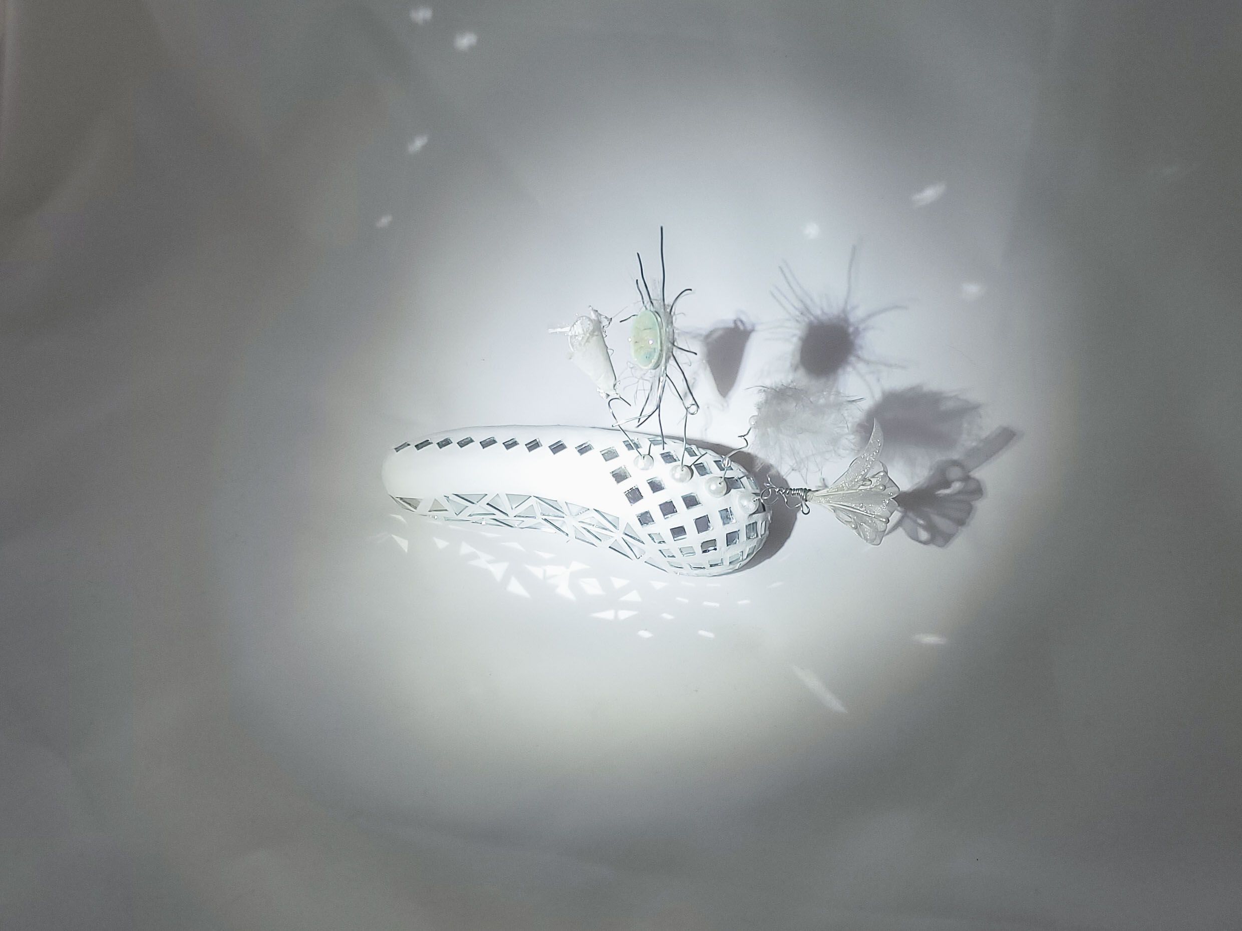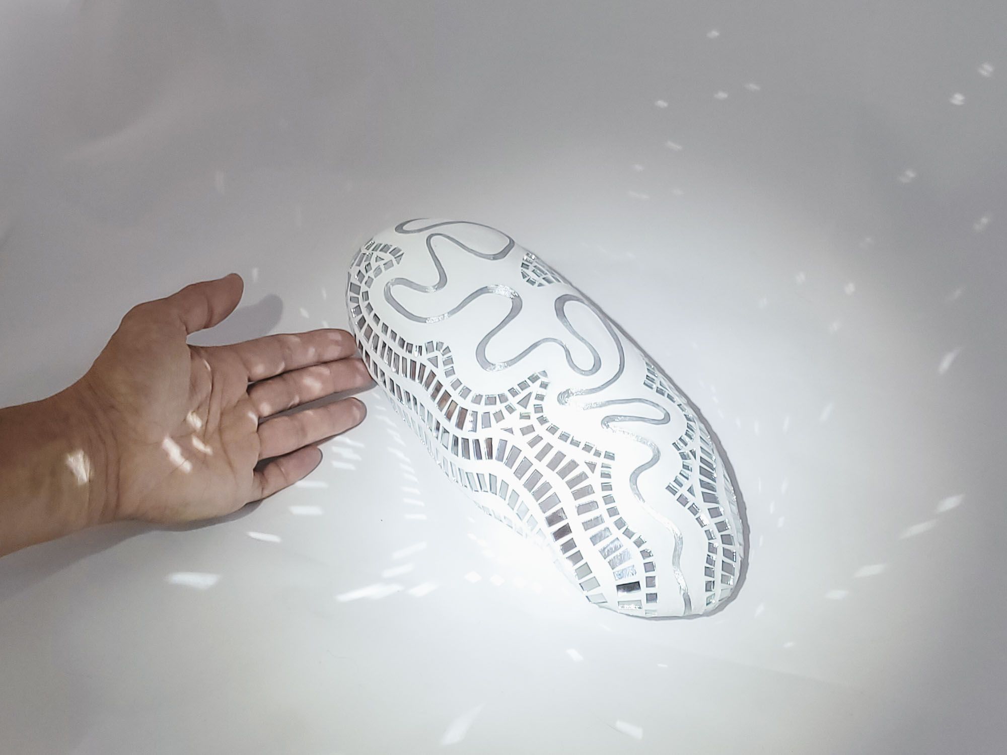 Die lichte Leichtigkeit der Steine: Für ihre Spiegelsteine verbindet ursamoh gegensätzliche Materialien und verarbeitet sie zu einem dreidimensionalen, glitzernden Ganzen. Basis für ihre harmonischen Werke sind bis zu 20 Kilo schwere Steine. Diese findet sie am Ufer oder im Wasser von Flüssen und Bächen. Die Steine überzieht sie in akribischer Kleinarbeit mit plattgeklopftem, geschwungenem Aluminiumdraht, Fugenzement und Glasnuggets. Damit verbunden ist ein ebenso intensiver wie spielerischer Dialog mit der Form und Dynamik jedes einzelnen Steins. Aus dieser Auseinandersetzung erschafft ursamoh lichterfüllte Unikate voller Energie.